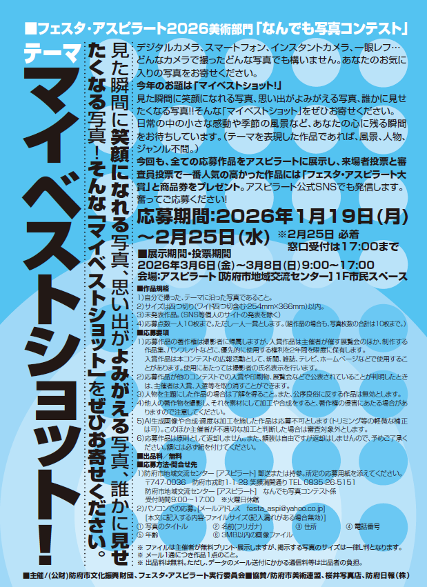 フェスタ・アスピラート2026(美術部門)なんでも写真コンテスト